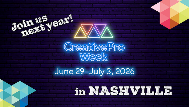 CreativePro Week is the world’s best how-to conference to master the tools of design, June 29–July 3, 2026 in Nashville and Online